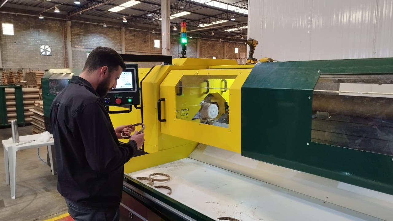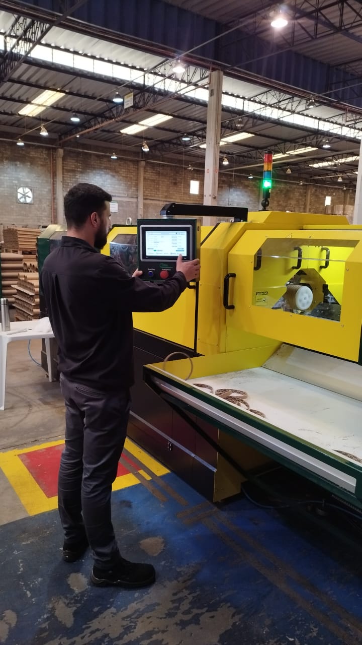 Com a necessidade de diminuição de ruído, poeira, aumento de produtividade e uma melhor condição de trabalho aos seus colaboradores, a Parnaplast adquire o recém lançado no mercado equipamento semiautomático para corte de tubetes de papelão e PVC.